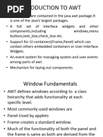 The document discusses different types of windows in Java including dialog boxes, file dialogs, and window events. It describes how to create modal and non-modal dialog boxes and file dialogs in Java and handle related events.