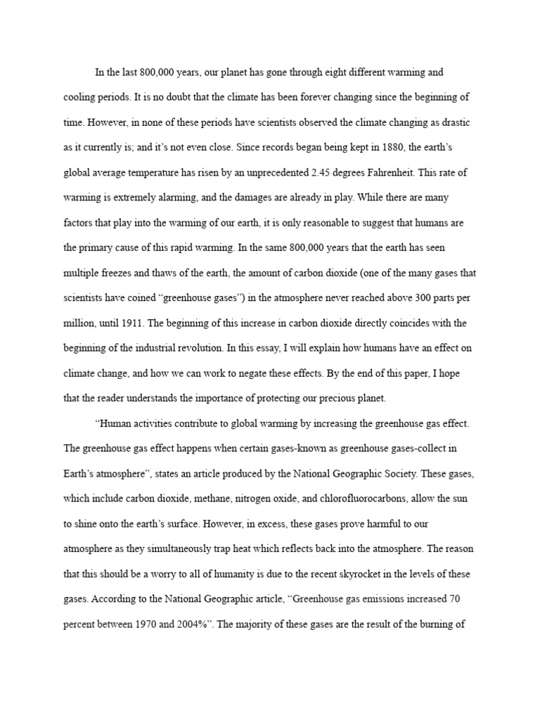 beginning of the industrial revolution. In this essay, I will explain how humans have an effect on