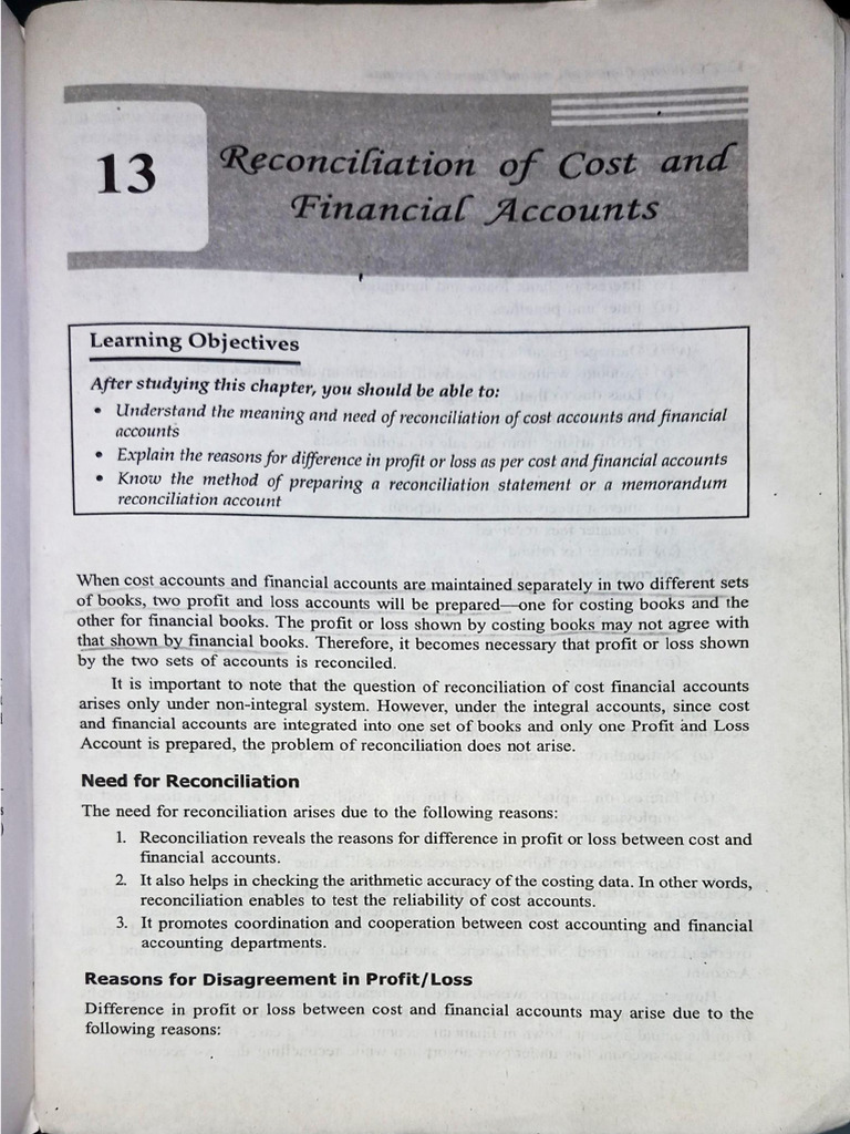following reasons:13.2 © Reconciliation of Cost and Financial Accounts