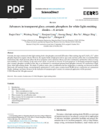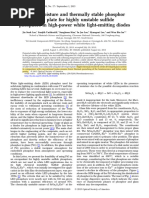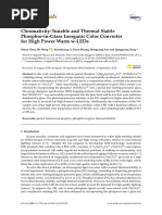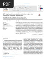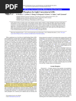 This document discusses a new Mn4+,Li+ co-doped SrMgAl10O17 red phosphor that was synthesized for use in high-power warm white LEDs. The phosphor exhibits deep red emission from 600-700nm and broad excitation from 250-530nm. It was incorporated into a phosphor-in-glass composite along with a yellow phosphor. LEDs using this phosphor-in-glass had superior performance, with the color temperature tuned from cool to warm white and higher color rendering compared to organic converters commonly used now.