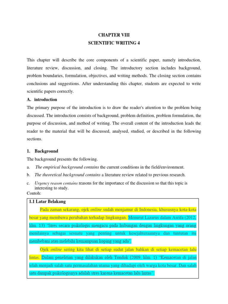 This chapter will describe the core components of a scientific paper, namely introduction,