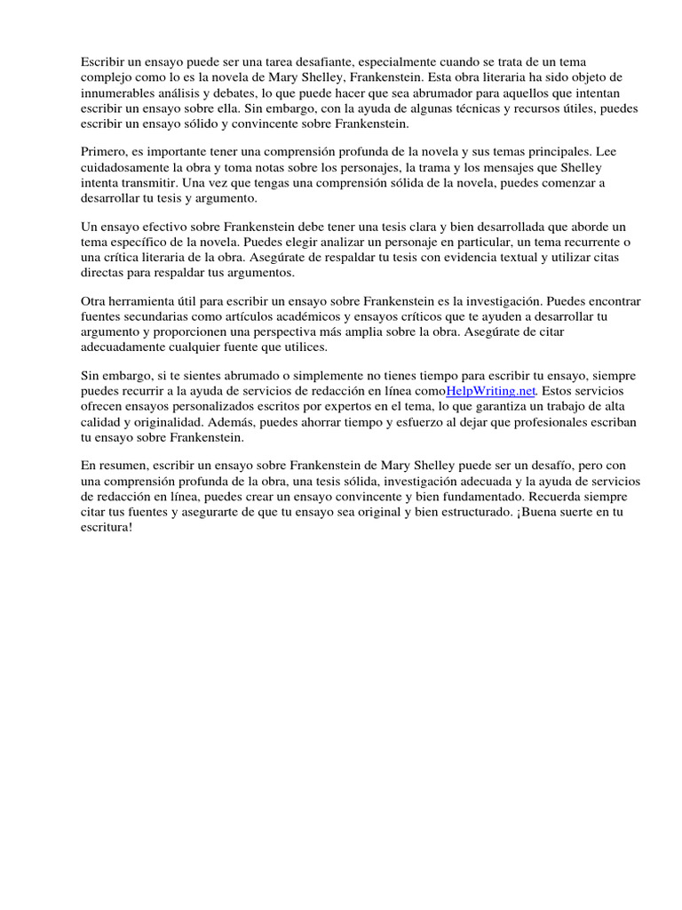 En resumen, escribir un ensayo sobre Frankenstein de Mary Shelley puede ser un desafío, pero con
