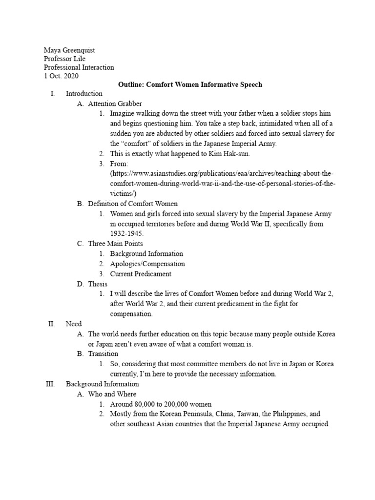 1. I will describe the lives of Comfort Women before and during World War 2,