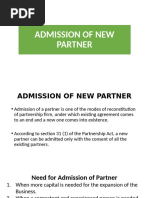 Admission of a partner means that a new person wants to join the partnership. A new partner