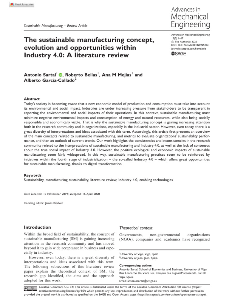 responsible processes. Accordingly to Despeisse et al.,5 ated with sustainability, no uniformity has been