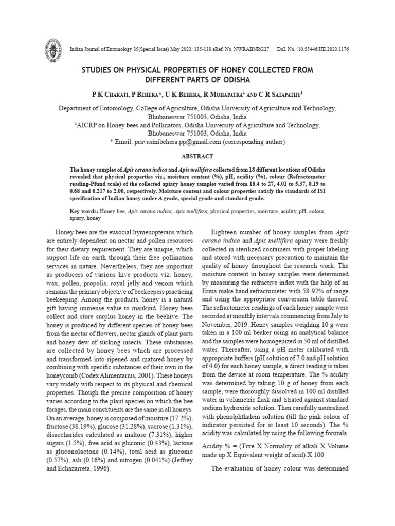 Studies on physical properties of honey collected from different parts of Odisha 137