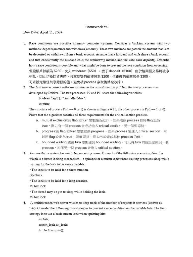 1. Race conditions are possible in many computer systems. Consider a banking system with two