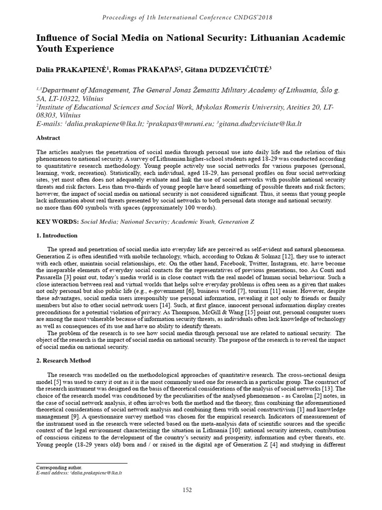 Influence of Social Media on National Security: Lithuanian Academic