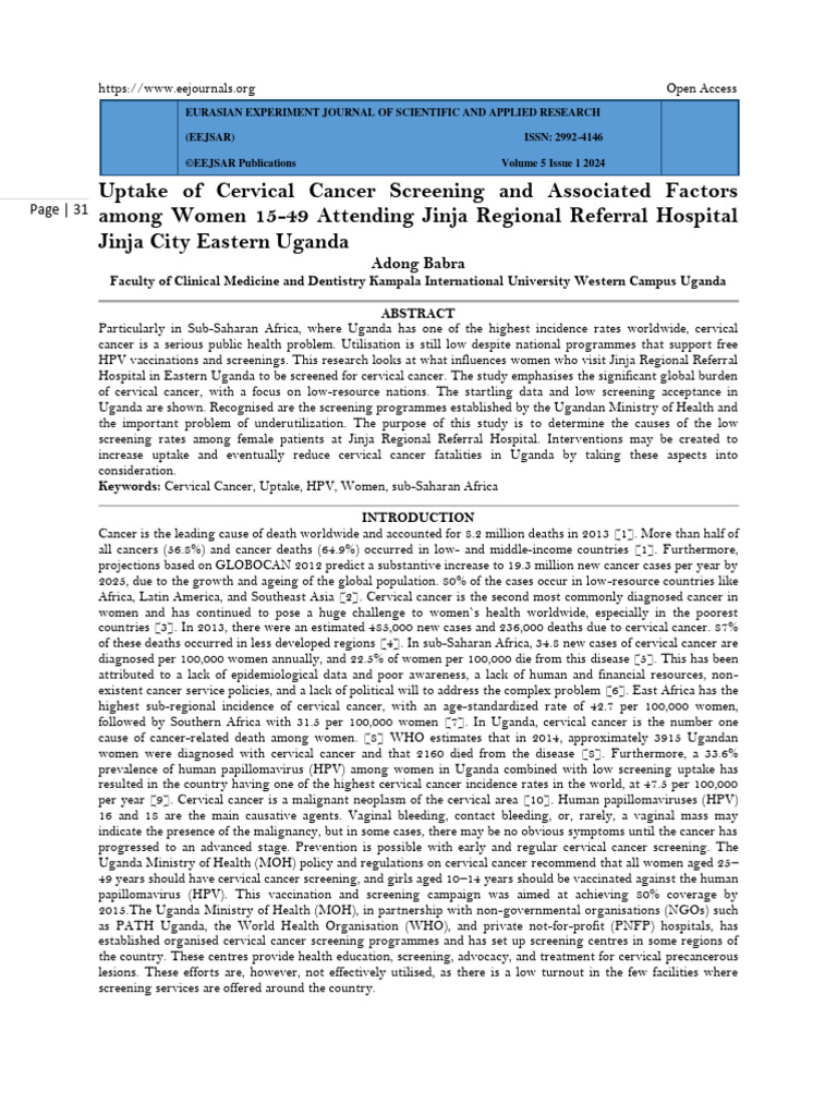CITE AS: Adong Babra (2024). Uptake of Cervical Cancer Screening and