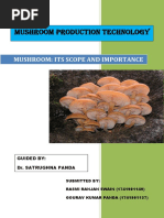 The document discusses the economic importance of mushrooms. Mushrooms play important roles in decomposition, are used for various purposes like writing materials and flower pots, and have applications in medicine like treating cancer, lowering blood sugar, and boosting immunity. They also have environmental benefits like decomposing dead organic matter and contributing to forest soil.