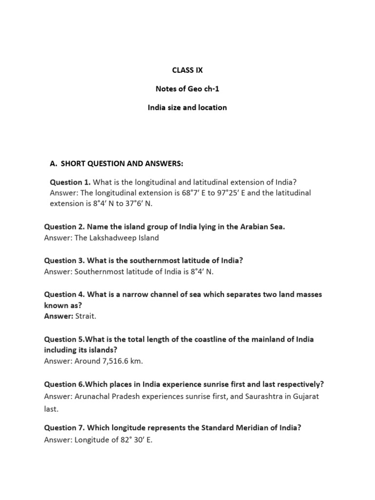 Question 1. What is the longitudinal and latitudinal extension of India?