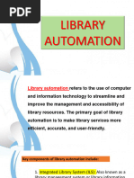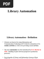 Library automation is defined as the use of computers and associated technology to carry out library services