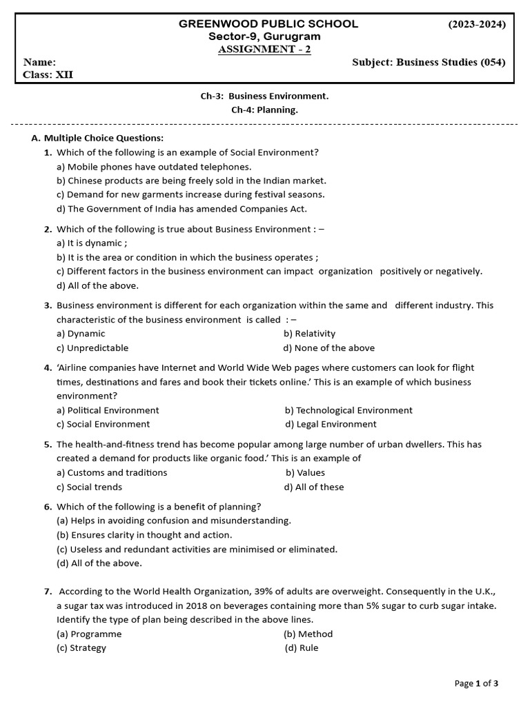 12. Assertion(A) : Business environment is a complex phenomenon.
