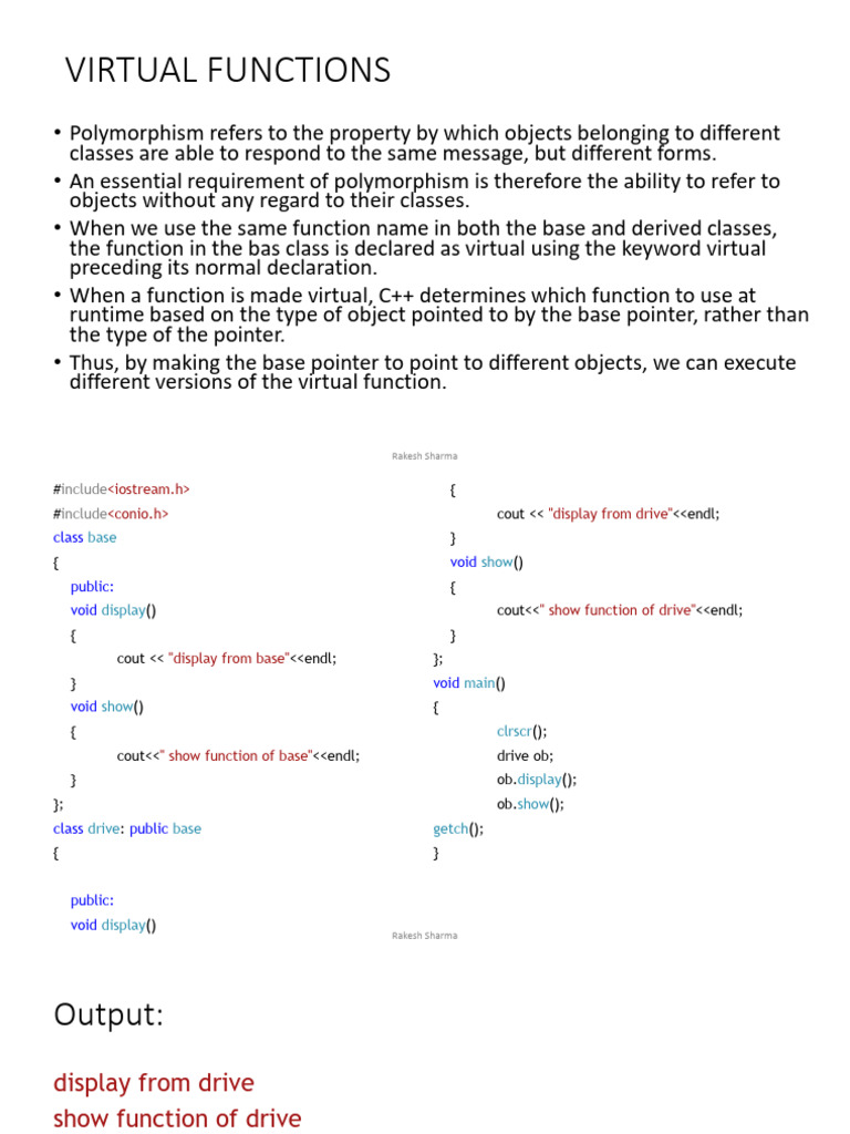 cout<<" show function of base"<<endl; ptr->show(); // show function of base