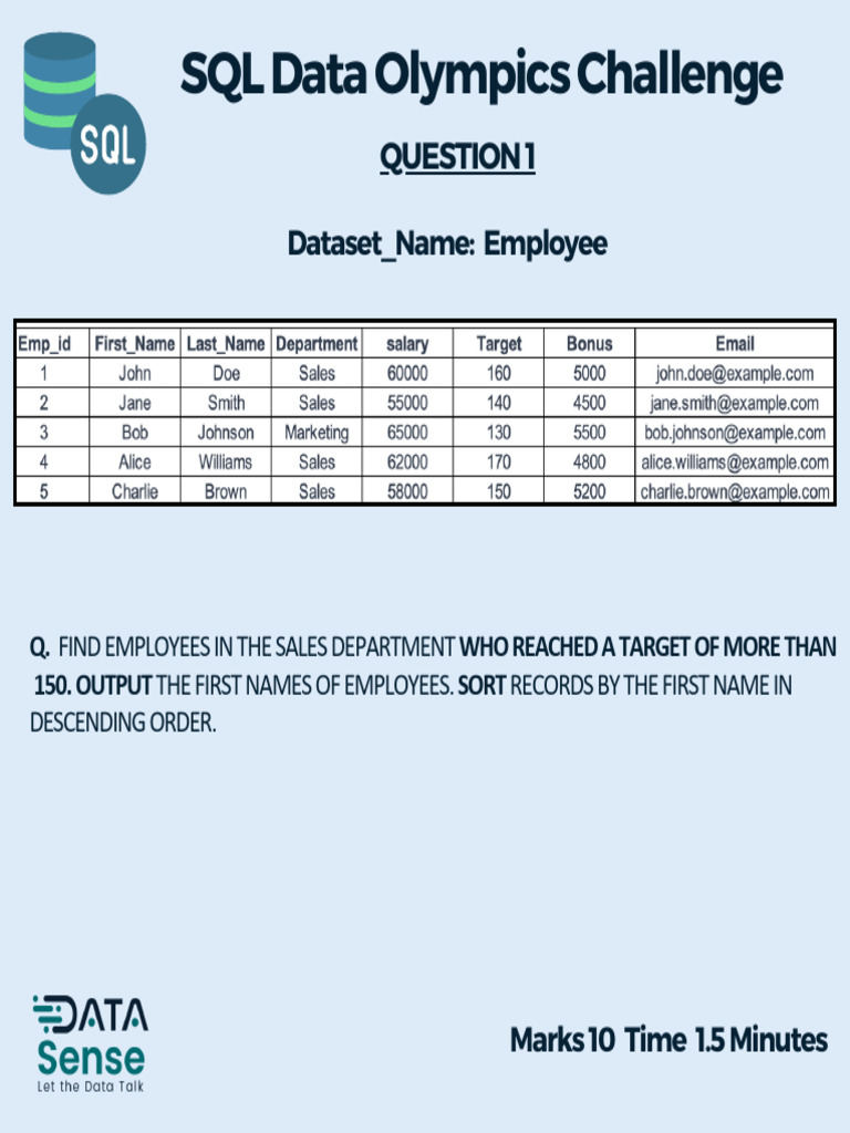 Q. FIND EMPLOYEES IN THE SALES DEPARTMENT WHO REACHED A TARGET OF MORE THAN