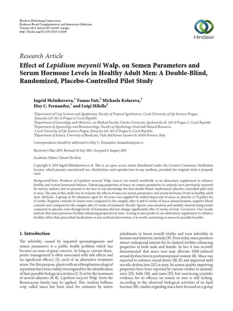 in men. The aim of this study was to evaluate the effects of maca on semen parameters and serum hormone levels in healthy adult