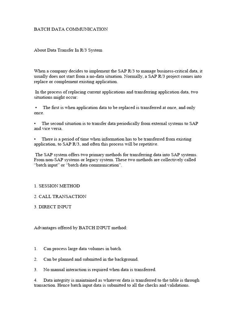 field. Data is passed to transaction in particular format, hence there is a need for batch