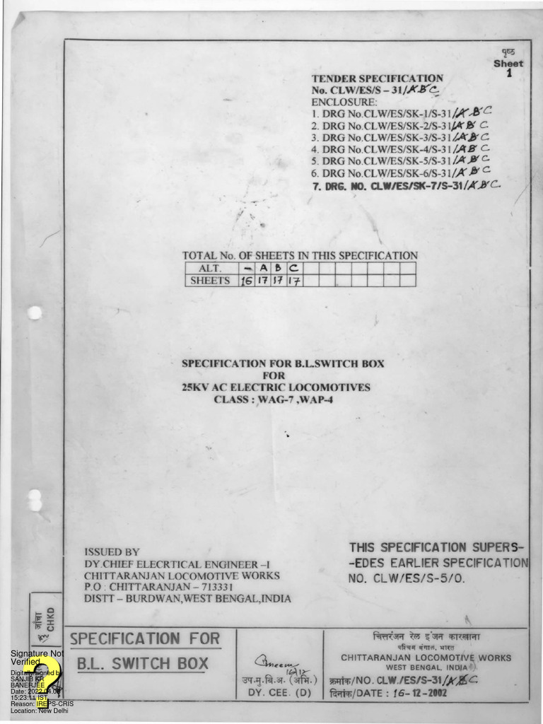 Signature Not CHITTARANJAN LOCOMOTIVE WORKS