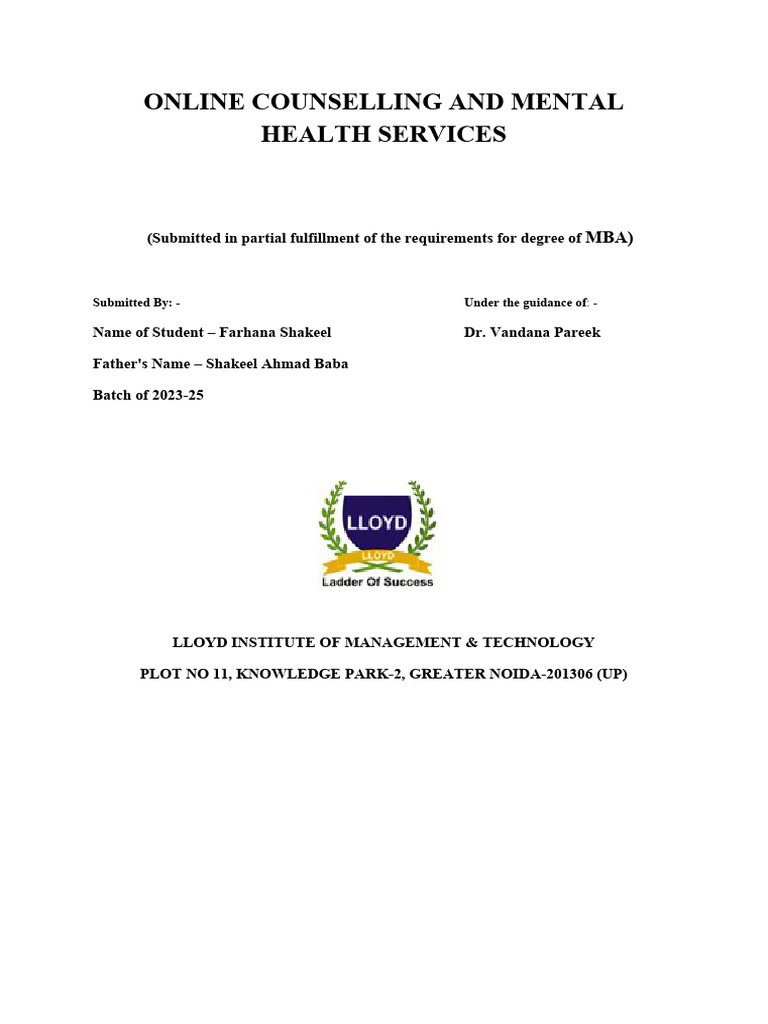 AND MENTAL HEALTH SERVICES” work done by Farhana Shakeel of 1st