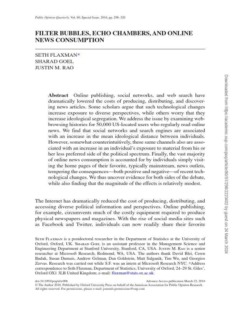 Goel, Hofman, and Sirer 2012). Providing evidence for this view, Messing and