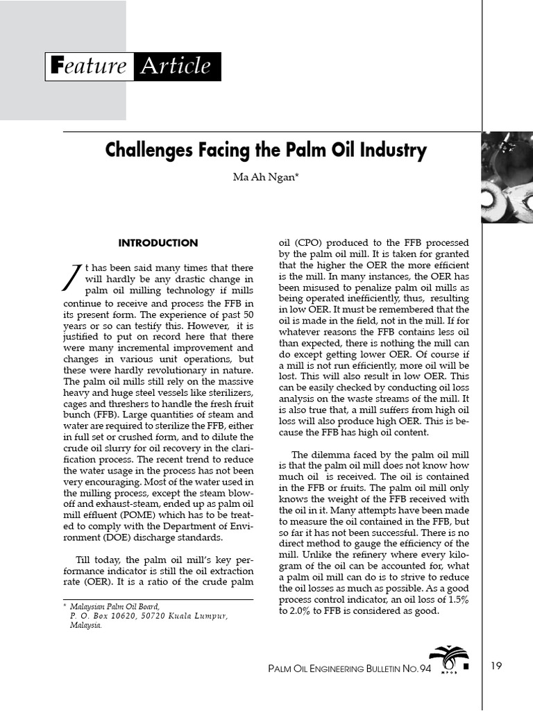 PALM OIL ENGINEERING BULLETIN NO. 94                  19