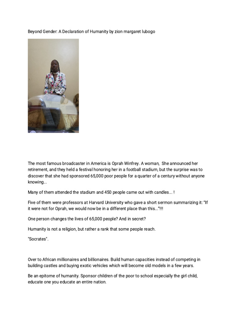 Beyond Gender: A Declaration of Humanity by zion margaret lubogo