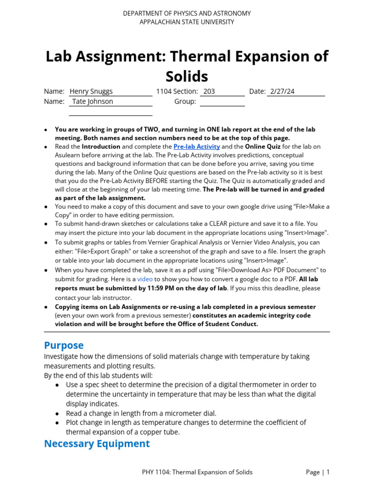 5. the goals of the lab were achieved by measuring the expansion on the copper tube