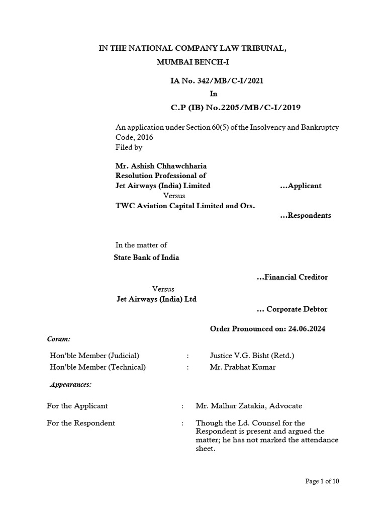 1. The Applicant Resolution Professional of Jet Airways (India) Limited (hereinafter