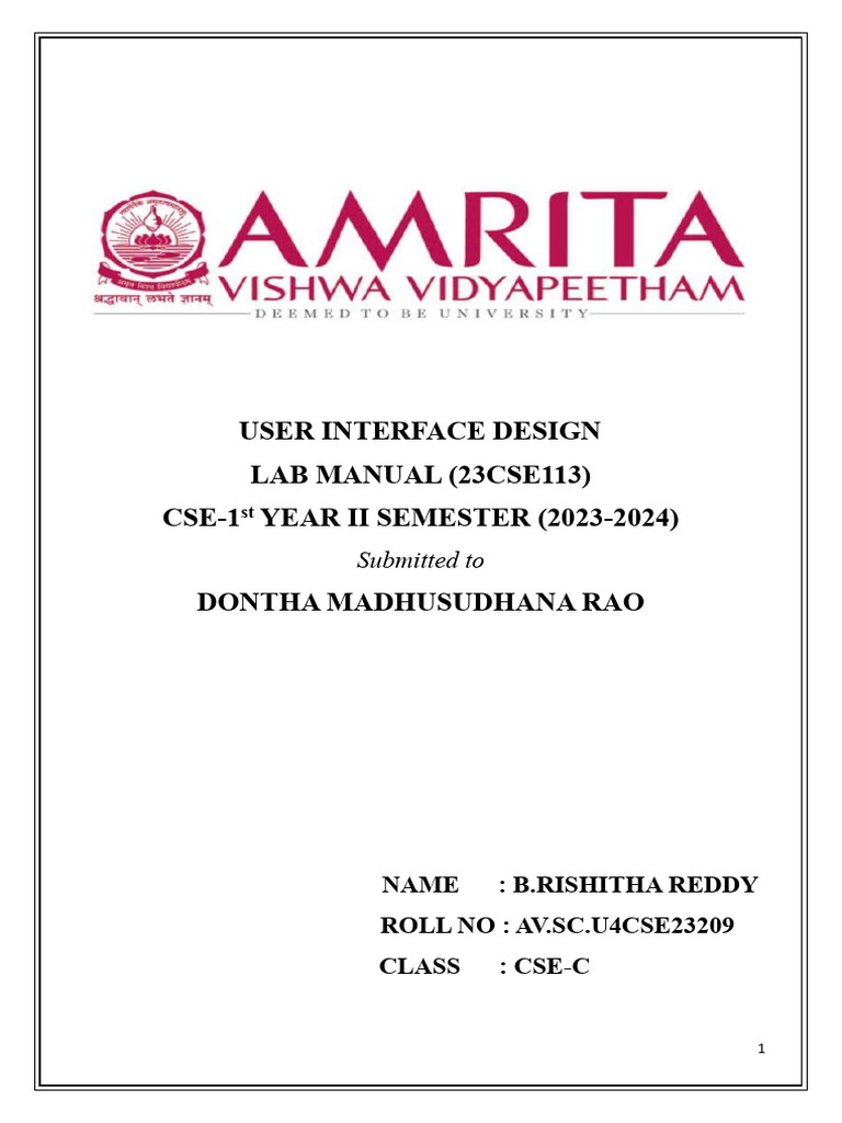 User Interface Design LAB MANUAL (23CSE113) CSE-1 YEAR II SEMESTER (2023-2024) Dontha Madhusudhana Rao