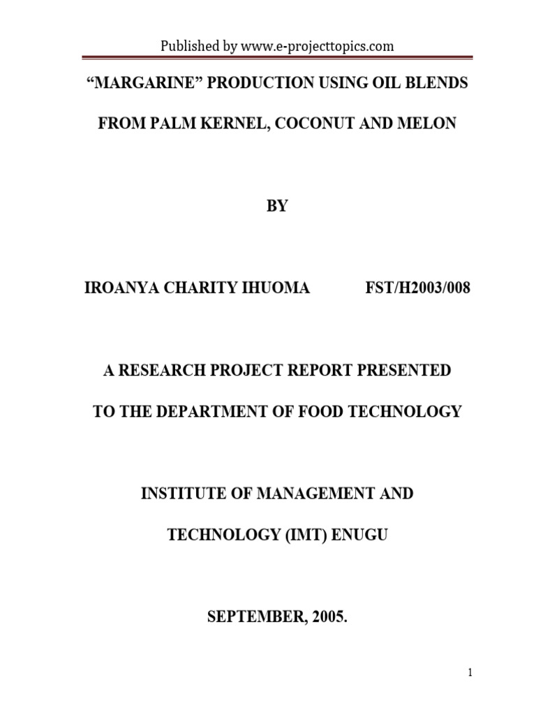 Margarine Production Using Oil Blends From Palm Kernel, Coconut and Melon