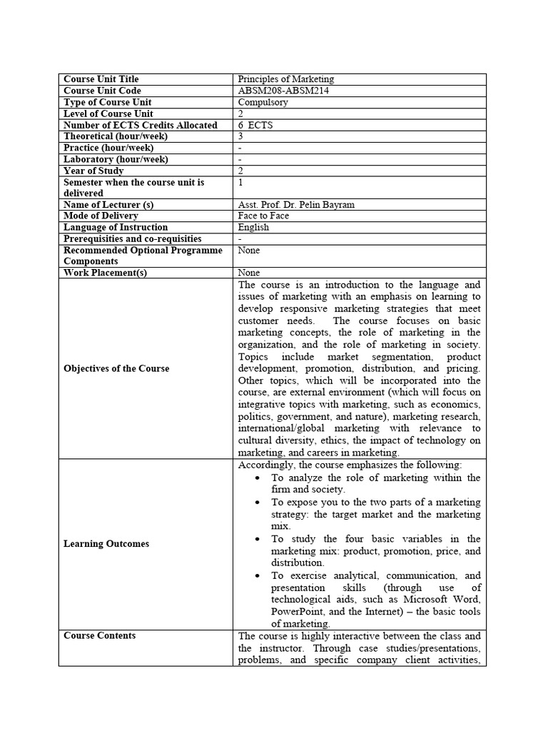 Name of Lecturer (s) Asst. Prof. Dr. Pelin Bayram