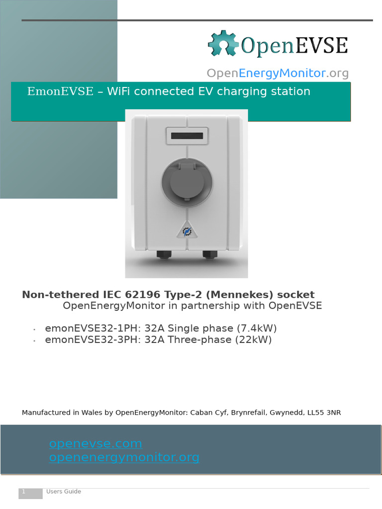 • emonEVSE32-1PH: 32A Single phase (7.4kW)