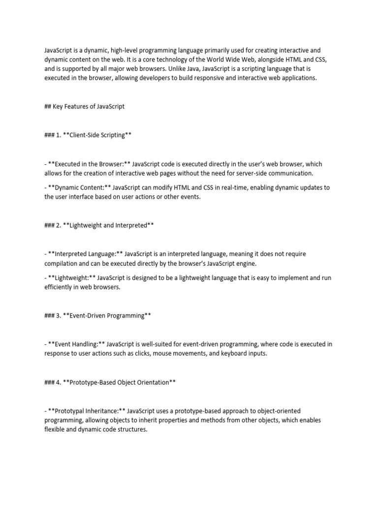 - **Interpreted Language:** JavaScript is an interpreted language, meaning it does not require