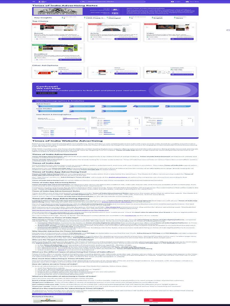 Advertising on Times of India Website and TOI App is a good option for displaying various products and services. Having 197 monthly active users, 1.6 billion page views,