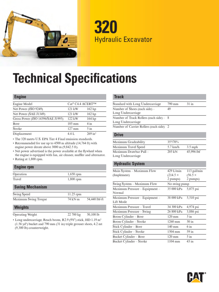 320 Hydraulic Excavator Specifications