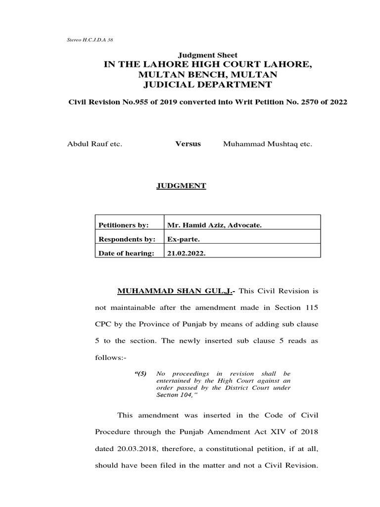 Abdul Rauf etc. Versus Muhammad Mushtaq etc.