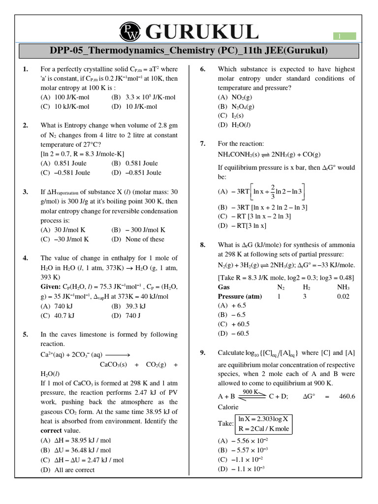 DPP-05_Thermodynamics_Chemistry (PC)_11th JEE(Gurukul)