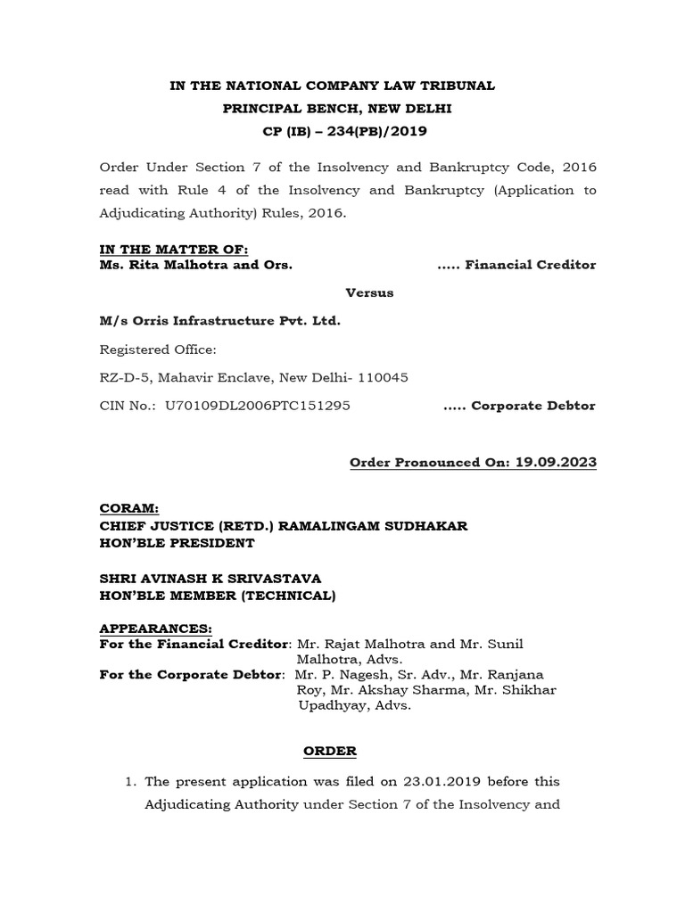 (CD) viz. M/s Orris Infrastructure Pvt. Ltd.