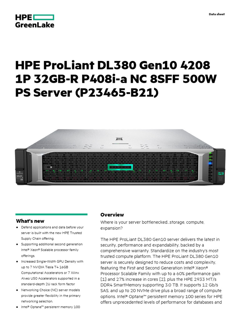 Supply Chain offering.                       The HPE ProLiant DL380 Gen10 server delivers the latest in