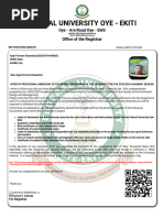 Letter of Admission into the University issued by the Joint Admissions and Matriculation Board and the Federal University Oye-