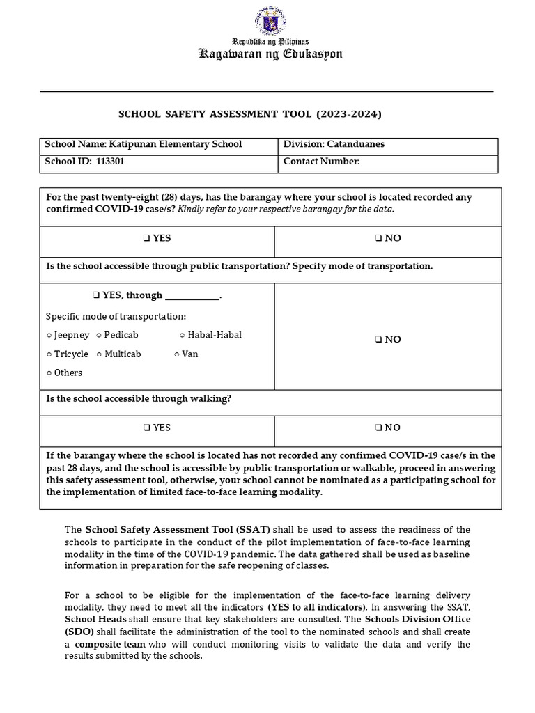 SCHOOL SAFETY ASSESSMENT TOOL (2023-2024)