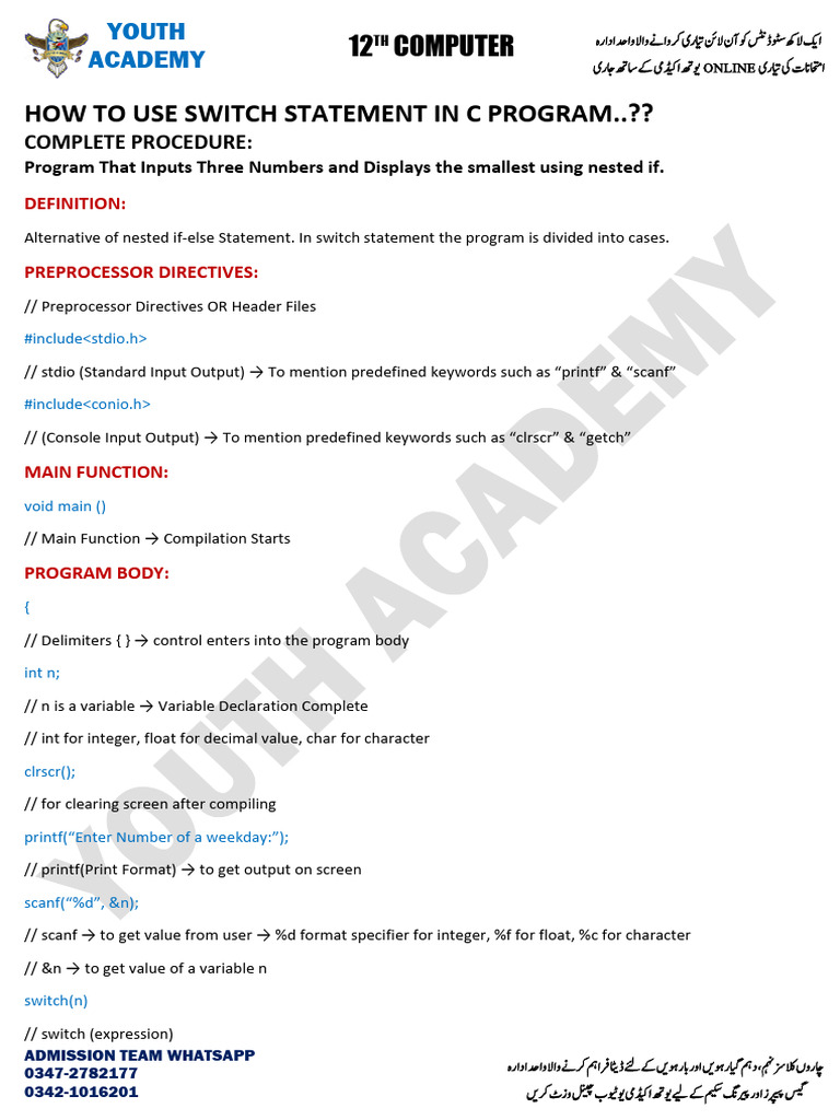 HOW TO USE SWITCH STATEMENT IN C PROGRAM..??