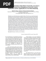 sample was inoculated in a 100ml of yeast extract glucose broth (Glucose- 0.3g; yeast extract - 0.3g; Peptone- 0.3g; sodium chloride-0.5g; water to make 100ml; pH- 7). The culture was then incubated in a rotary shaker (ORBIT Shaker Incubator, 3. 5 Neo lab) for 72 hours at 37oC. 3 Secondary inoculum: A 50ml Fig. 1. Effect of pH on protease activity medium contains: Bacto 2. 5 peptone or tryptone- 0.25g; sodium chloride- 0.25g; 0.25ml of 2 inoculum was added after 1. 5 strization and incubated for 72 hours at 37oC. 1 Production media: Production pH media (500ml) contains: 0. 5 Groundnut cake powder- 7.5g; 0 horsegram flour- 2.5g; Glucose1 2 3 4 Protease activity (g/ml) Research article