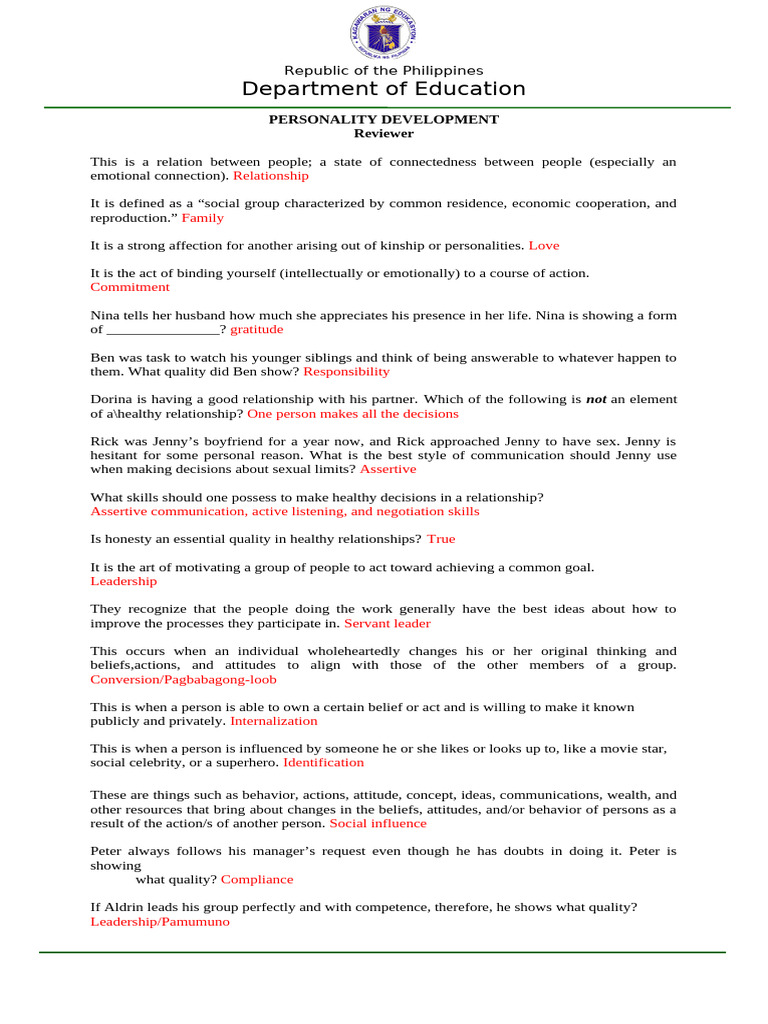 PERSONALITY DEVELOPMENT