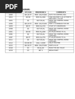 ADDRESS OPCODE MNEMONICS COMMENTS