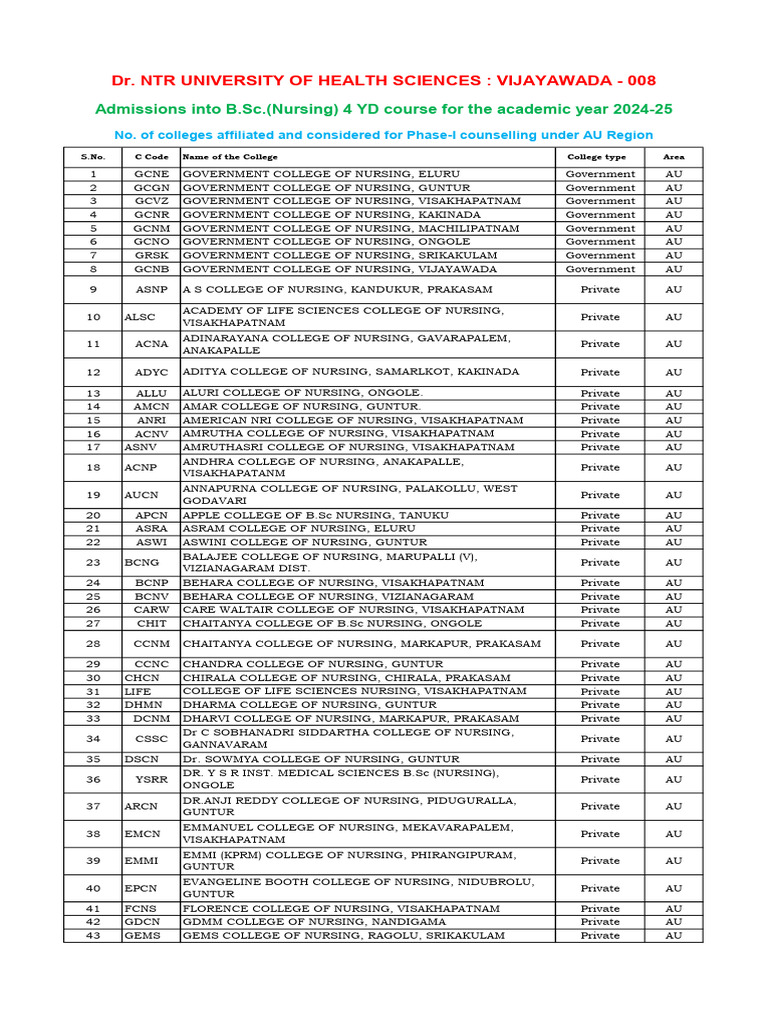 4 GCNR GOVERNMENT COLLEGE OF NURSING, KAKINADA Government AU