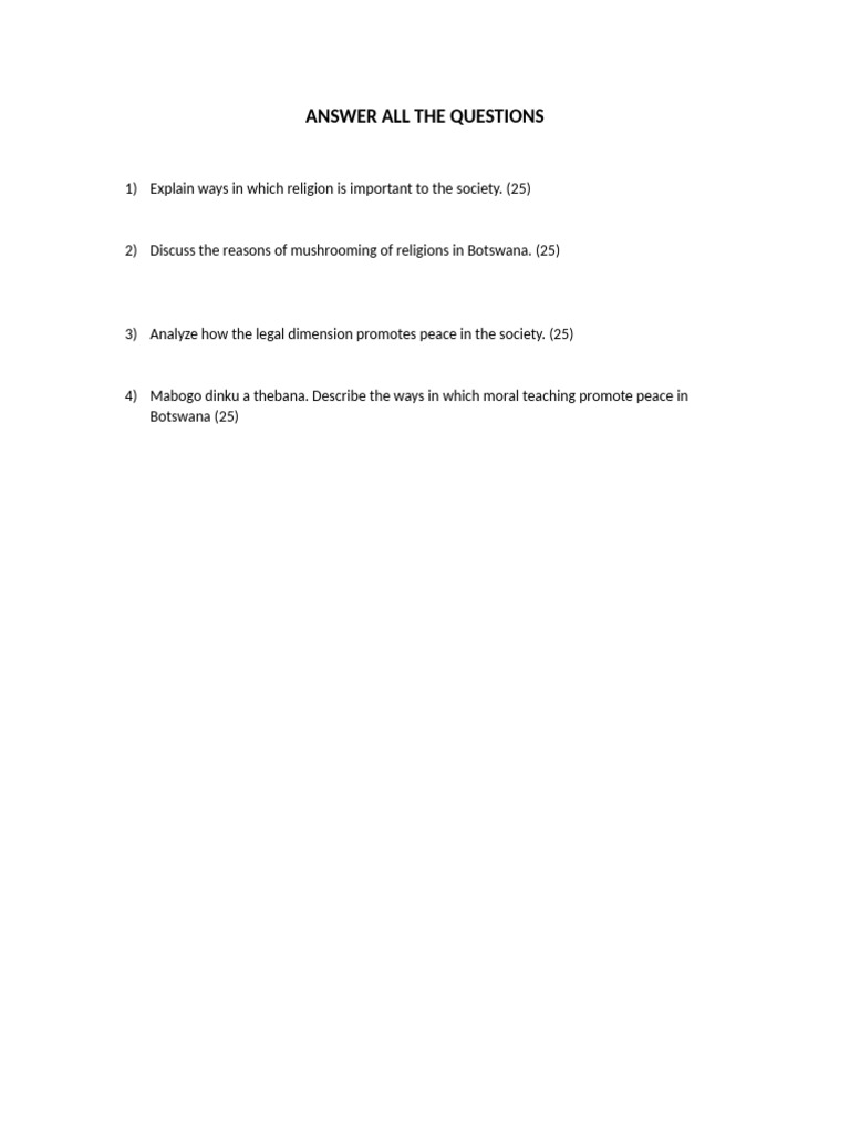 2) Discuss the reasons of mushrooming of religions in Botswana. (25)