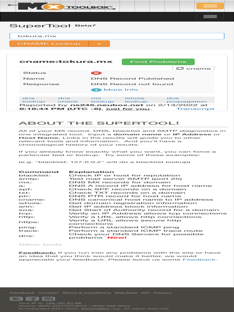 Phone: (866)-MXTOOLBOX / (866)-698-6652