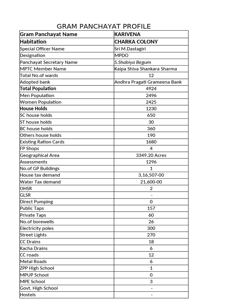 Panchayat Secretary Name M.LAKSHMI RATHNAMMA