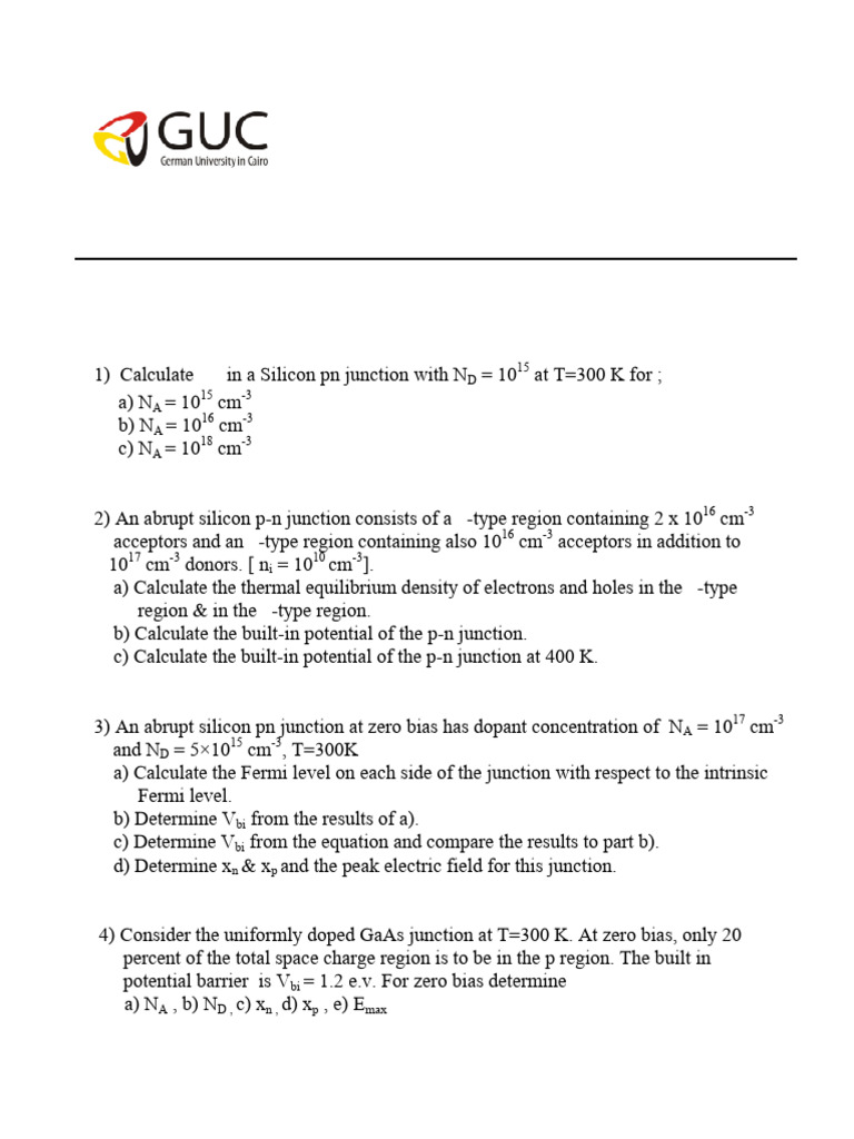 2) An abrupt silicon p-n junction consists of a p-type region containing 2 x 1016 cm-3